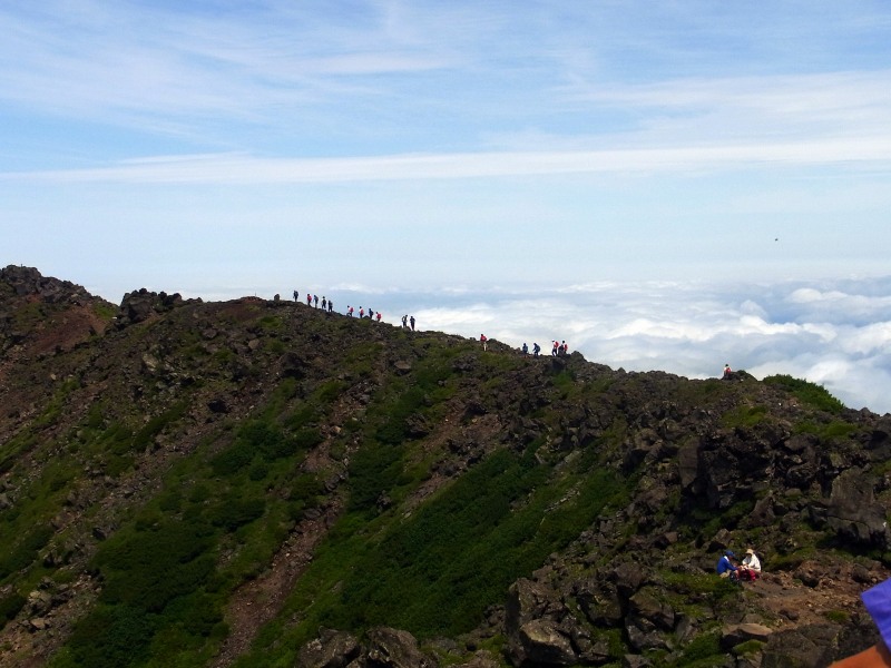 休憩中に、男性に引率された女性グループが岩尾根コースに向けて出発していきました。
