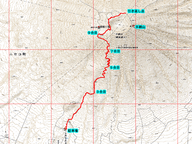 前日に、倶知安町役場に電話を掛けて、羊蹄山の登山道の状態を確認したところ、アイゼンの携行は不要とのことでした。
