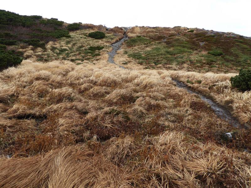 紅葉は、6合目付近から下で見られましたが、木々の紅葉は殆ど色あせていて、大雪山方面と同じような綺麗な紅葉は全く見られませんでした。
