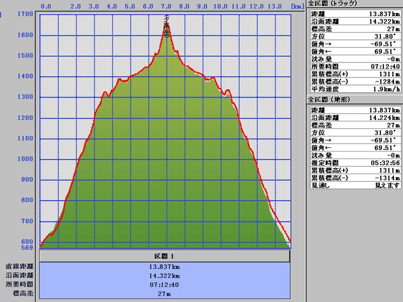 山頂着 9時25分 ( 51分) (往路 3時間35分)